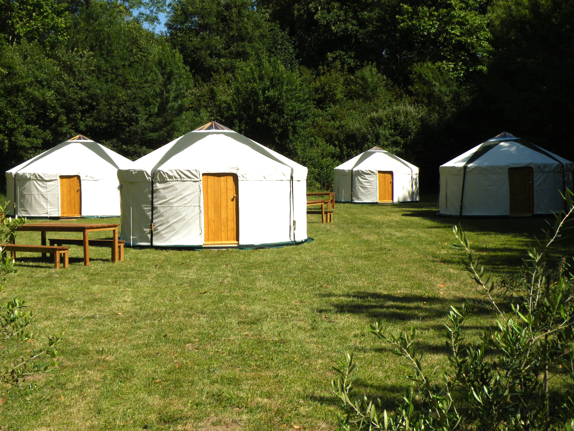 French Glamping Site: 3 x 14ft yurts and 1 x 18ft yurt each with wood burning stoves, singles doors, windows, groundsheets and coir mats